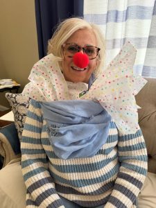There were smiles all around when Tina prepared to leave in her costume, handing out red noses.